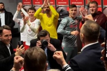 Nawrocki, stojący wśród zawodników w eleganckim stroju, nie ogranicza się do roli obserwatora – aktywnie uczestniczy w świętowaniu, nadając mu rytm i energię. Całość przypomina bardziej sceny z piłkarskiego filmu niż oficjalną wizytę głowy państwa. To właśnie ten nieformalny, pełen emocji moment stał się symbolem jedności drużyny i wyjątkowej atmosfery po ważnym zwycięstwie.